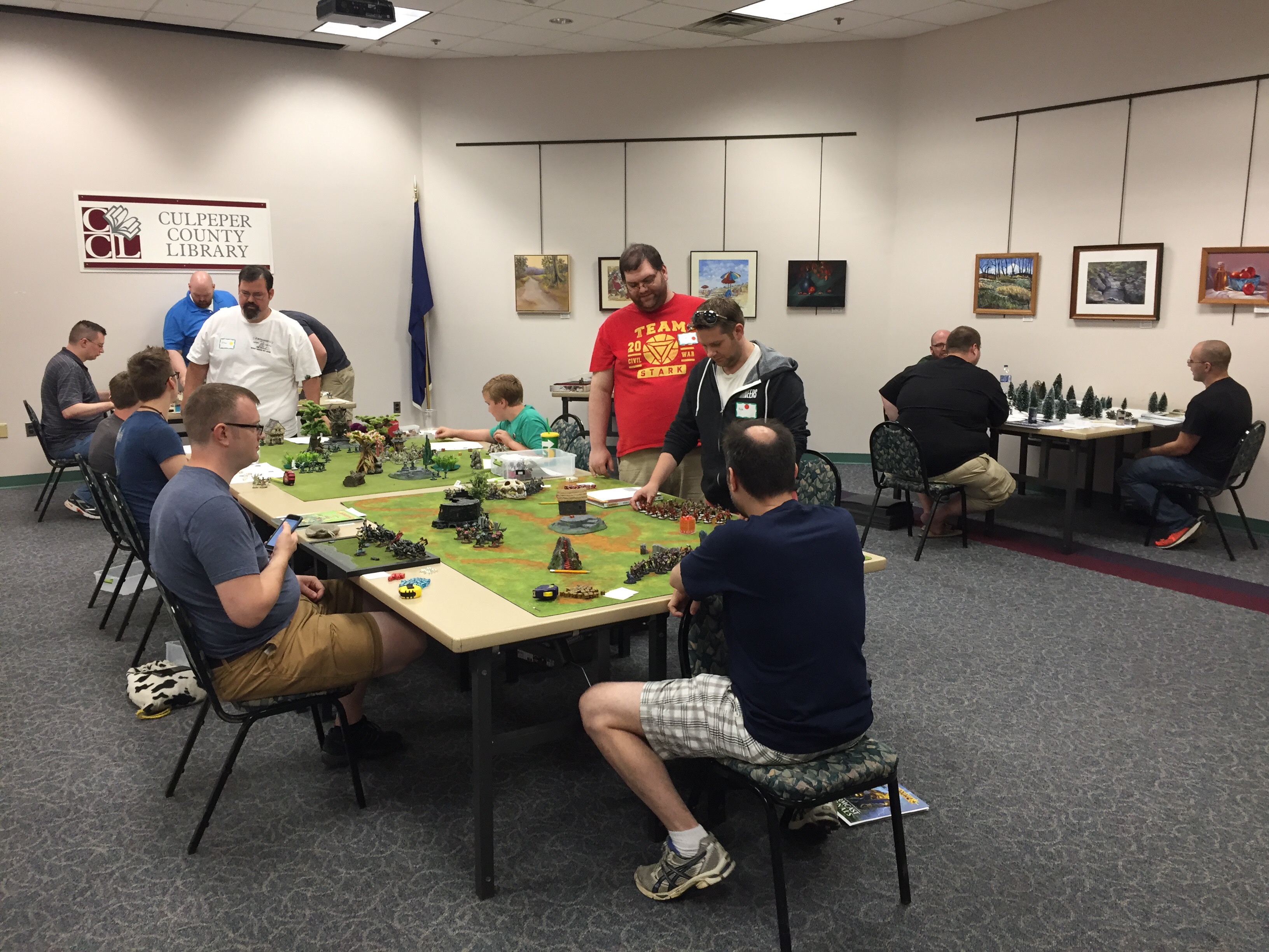 I appreciate our local public library allowing us to use their meeting space and tables, and to those in my local club that helped me build terrain, loan models for new players, and help with the logistics of setting up an event for this many players.