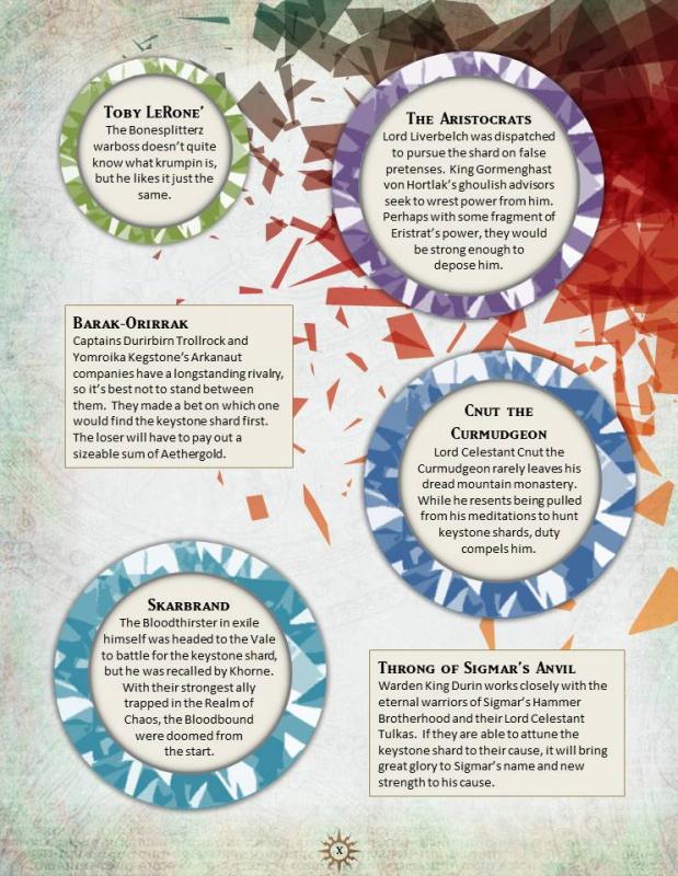 The fluff snippets spread was created from stories submitted by my players to earn a special narrative “Triumph” card to use in the event. Every single player submitted something, which I was pretty enthused by. Sadly, one player submitted their story (the Skarbrand one), but then had to babysit and couldn’t attend.