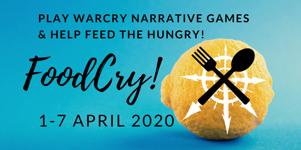 FoodCry is a simple Warcry narrative event involving players participating in games to develop their quests during February & March as a two month period leading up to FoodCry Week, April 1st – 7th, 2020.