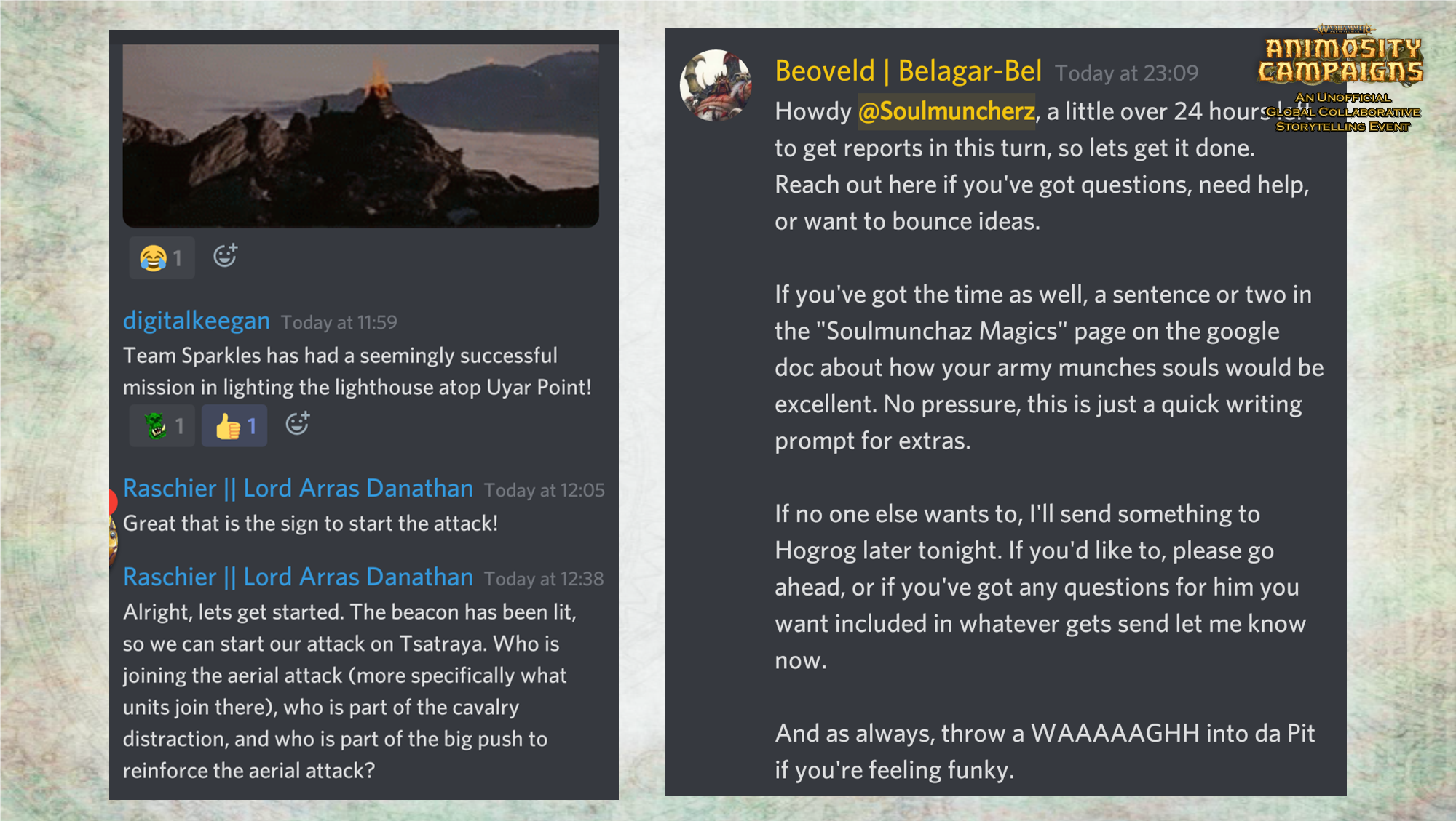 We interview the members of the Animosity Team for details on how this was created and managed, as well as show off the amazing hobby, art and writing contributions of the many players that participated.
