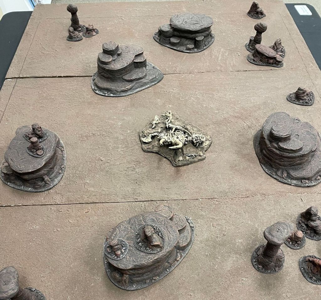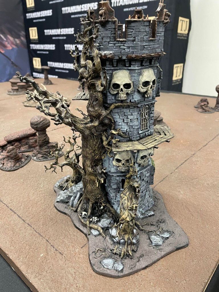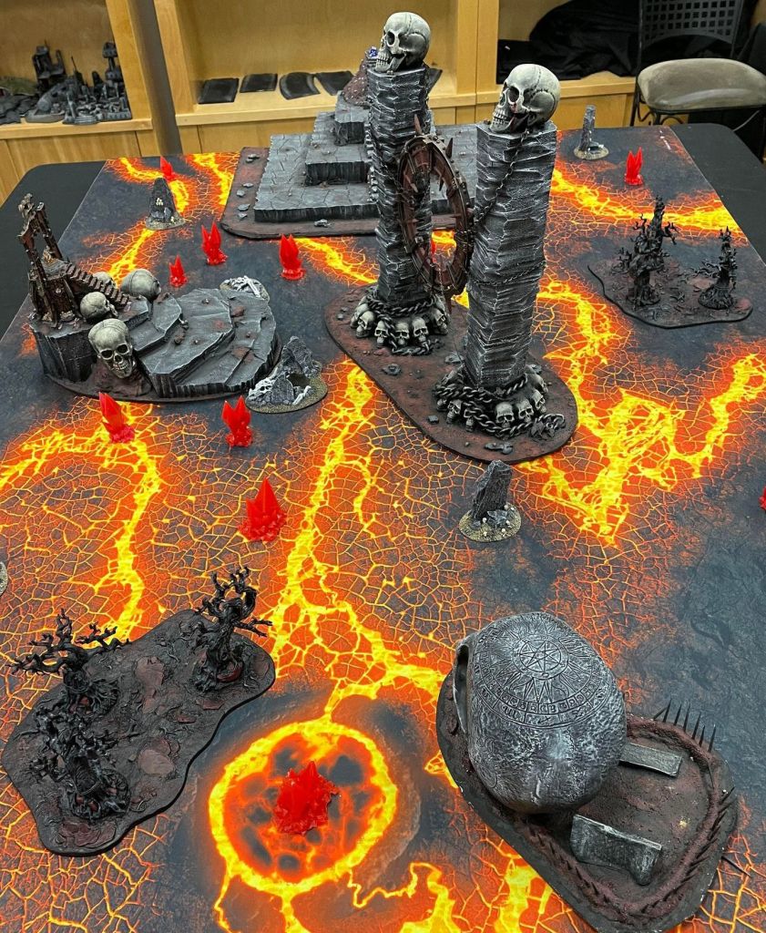 A: I don’t have the expanse of terrain I used to have, but I do have a few key pieces that I kept. Notably a large tower that I sculpted a giant tree next to. TJs has done a lot to add terrain. They have purchased a ton of Battlefield in a Box terrain to get their table set ups going. And will likely be playing mostly on these tables. I do hope to help replicate some of those unique tables I had – but it will take time.