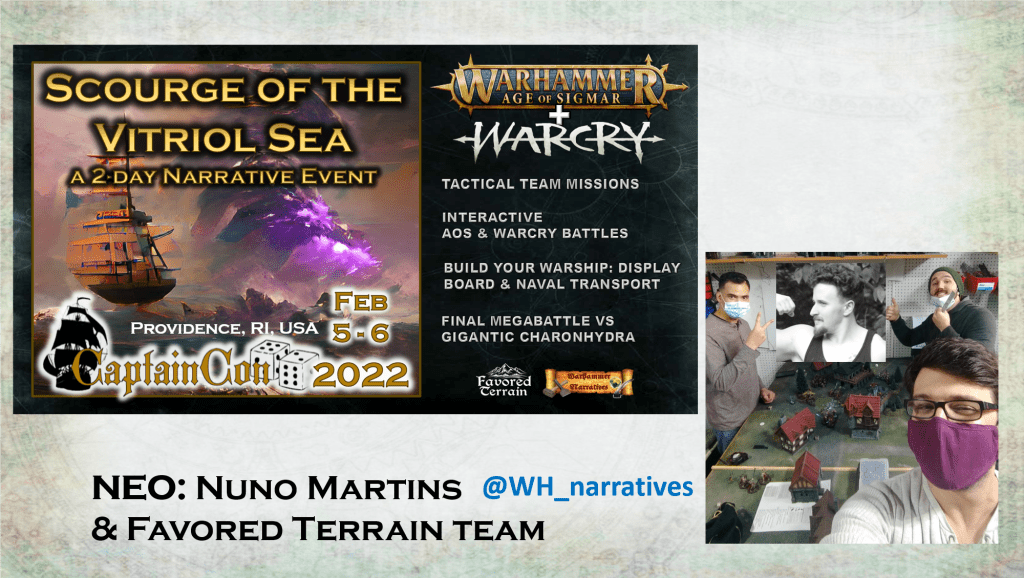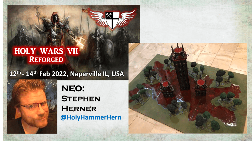 This episode is all about organizing your first big narrative event: booking a large venue, getting a lot of tables prepared and managing special rules and questionable player choices. NEO Nuno Martins interviews Charles and Phil, both narrative players and NEOs in the UK scene, who have run WitneyWarhammerOne last summer in England.