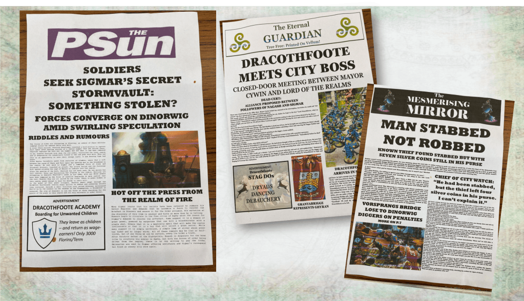 We publicize recent and upcoming Age of Sigmar narrative events, as well as rules design and other narrative content producers.