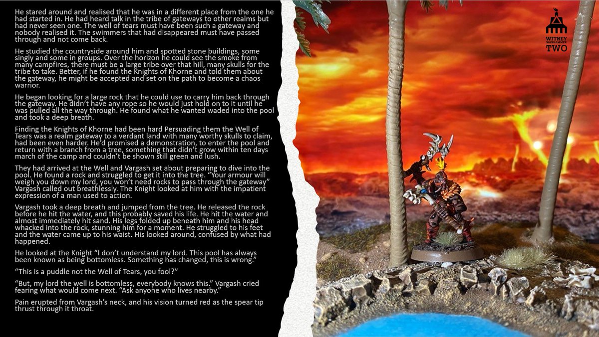 WitneyWarhammer events are grand narratives, with themed tables each keyed to a location on a map, full of secrets to find and player teamwork required to decide the fate of the Brimstone Peninsula.