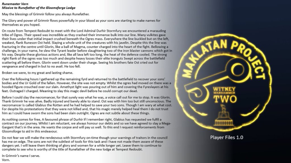 Several players have been sending us their own stories, we have been publishing these player files on twitter. They have been fighting battles with their armies and developing a back story ahead of the event.