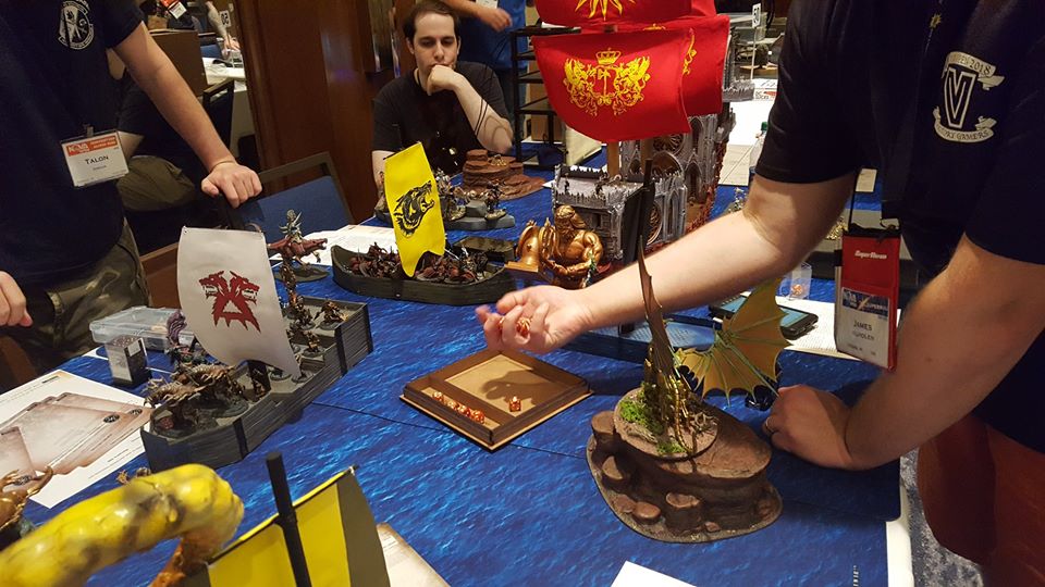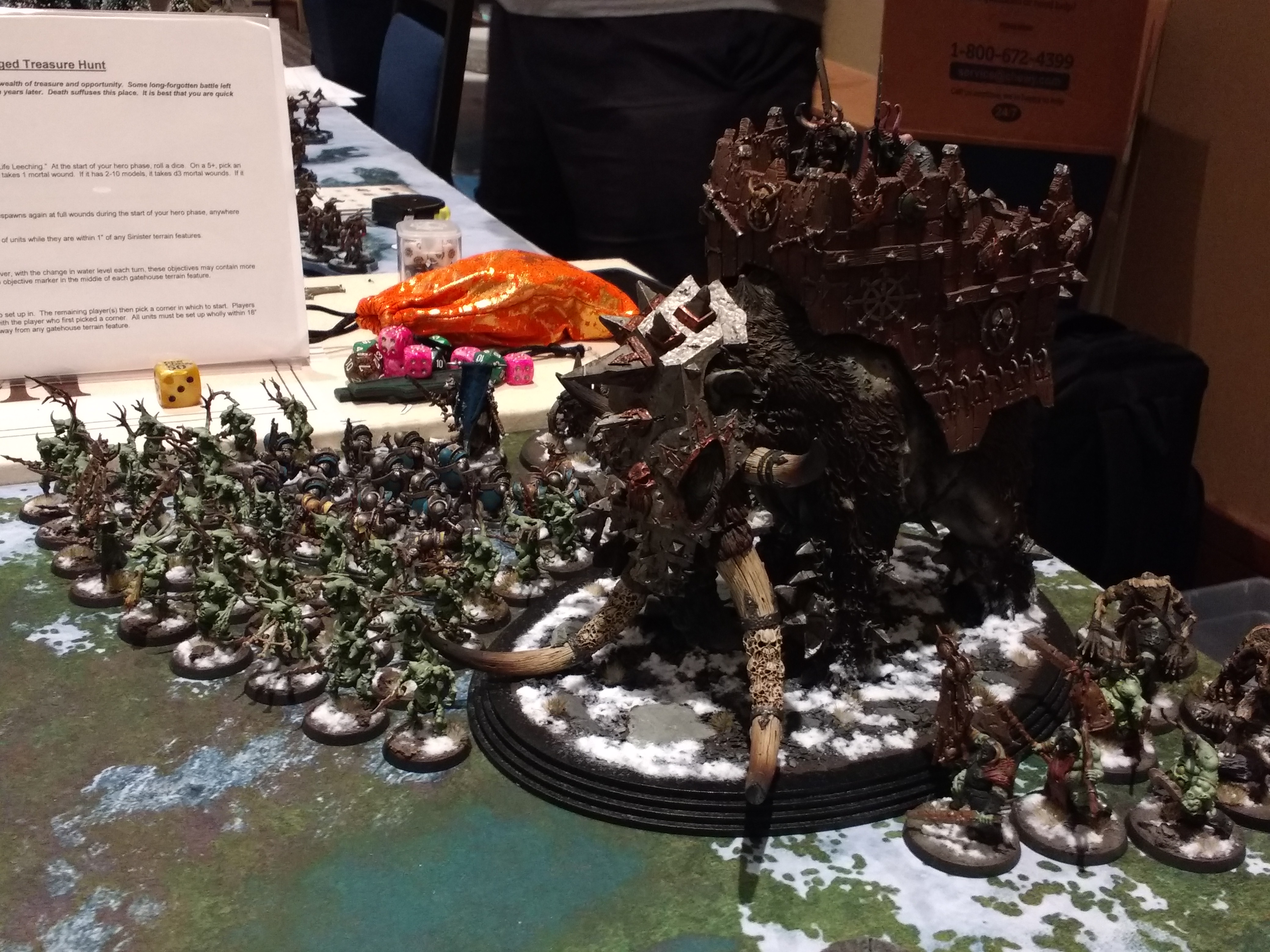 Players will join one of the three teams, bringing a 2000 pts army, and each army will have a custom monster warscroll that will be upgrade-able.