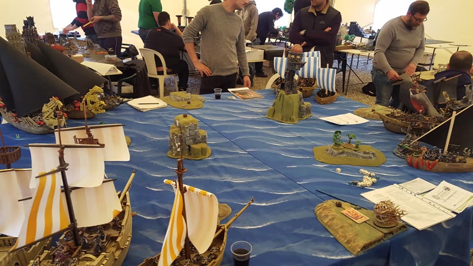 For the naval battle, four players will be divided into 2 fleets that will face each other as enemy armies. Each player will be able to use a maximum of 3 SHIPS, one small, one medium and one large. The places for this scenario are limited, though the ships will ALL be provided by the organizers!