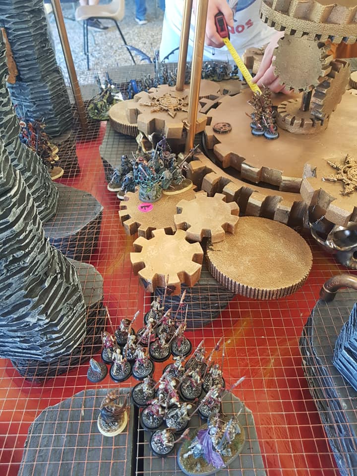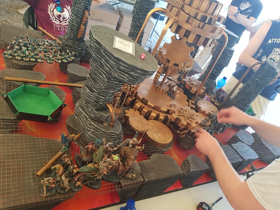 Some special rules in the event battles included potions to heal wounds, and keys to activate the machine. The champion teams of the 4 factions played the final game, one set of players on the Obscura Machinaris and the other on Dracothion’s back. When a player on the machine won a battle round, it fired a ray that created a “wounded target” on the dragon’s back on the other table.
