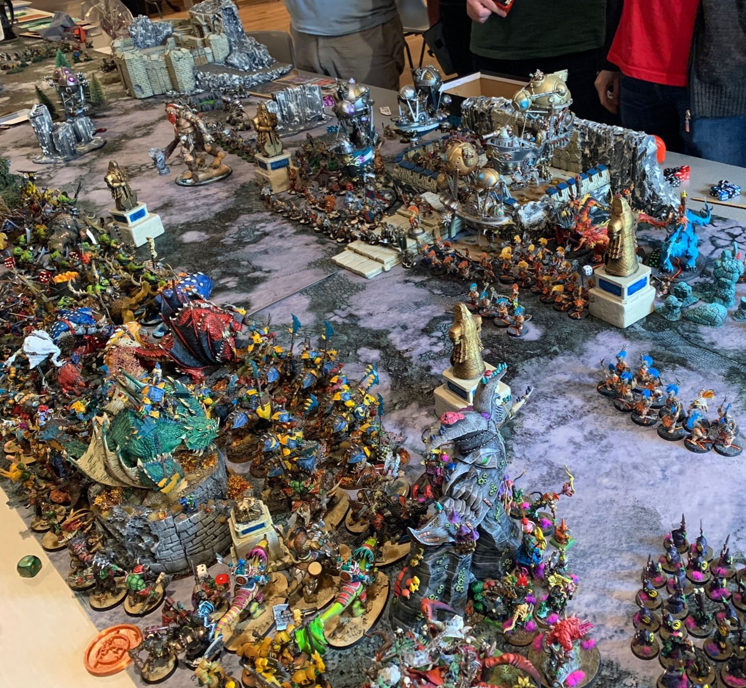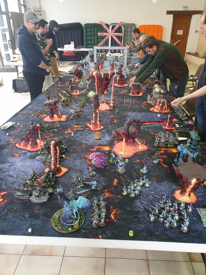 The main confrontation will be the clash between Sigmar and Archaon. On a table in Ghur, the clash is in Gallet: composed of 4 GW tables painted for the occasion, we will be putting 20,000 pts of Slaves to Darkness vs 20,000 pts of Stormcast Eternals. It’s going to be 280 warriors of chaos against 200 liberators / sequitors / vindictors… in short, excess.