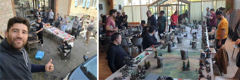 In 1500pts warm-up battles, I prioritize putting a beginner player against an experienced player, who will guide their opponent to remind him of the rules and possibilities of the game (anticipation, defensive organization, choice of priorities and preparation to undergo a double round). 1500t games with leveling allowing exchanges and facilitating the setting up of the next day’s battles.