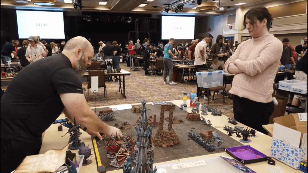 A: Squig City currently features both our Annual Grand Tournament for Warhammer: 40,000 as well as our annual Age of Sigmar Grand Narrative event. Each event runs concurrently, and this year between the two game systems, we had 112 players in attendance! We have players who travel up to 7 or 8 hours to join us in Eastern Oregon for our events, and through our social media and discord presence, more and more folks learn about Squig City each year. For me, the narrative is the heart of the event each year, and so we aim to ensure that our players have the opportunity to play in the same room as the 40K GT, and to even have some of their matches featured on the mainstage!