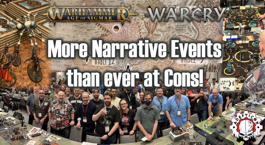 Age of Sigmar narrative gaming has been on offer at some US conventions for several years (NOVA, Adepticon, LVO and a few other smaller cons) thanks to diligent NEOs, but this year at Adepticon it was bigger than ever!Two Age of Sigmar events, one Warcry event and one Hinterlands (skirmish) event! "The Festermere Conflict" - … Continue reading More AoS narrative event offers at conventions than ever before!