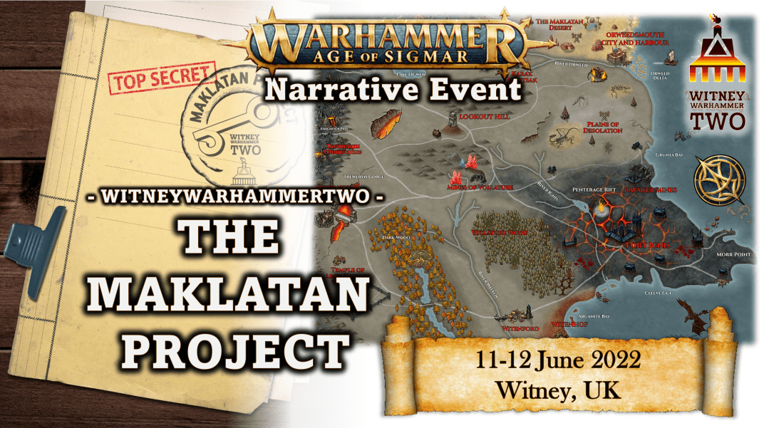 The WitneyWarhammer narrative event returns, again in Witney, England UK, on this coming 11-12th of June 2022. WitneyWarhammer events are grand narratives, with themed tables each keyed to a location on a map, full of secrets to find and player teamwork required to decide the fate of the Brimstone Peninsula. SOUND ON Event pack coming … Continue reading WitneyWarhammer returns! The Maklatan Project – June 11-12, Witney, England UK